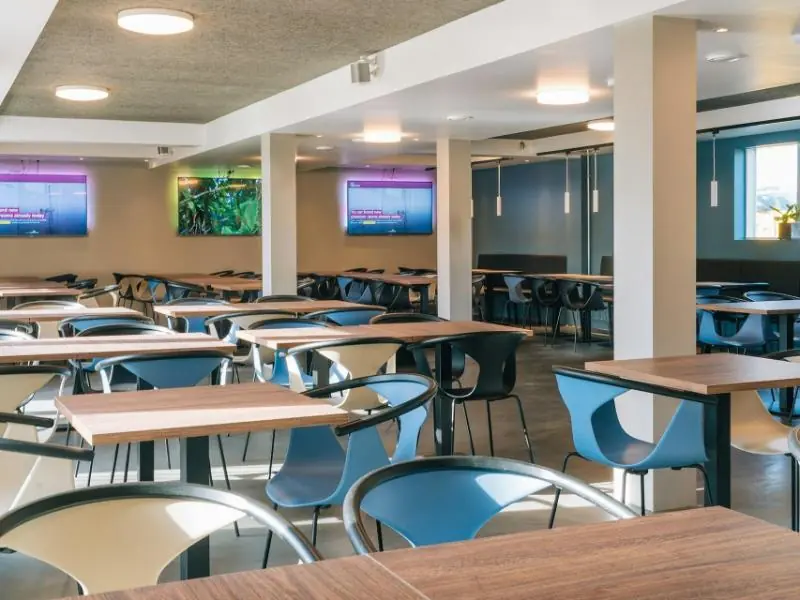 웨이크업 코펜하겐 – 보르거가데는 도심 한가운데 위치해 있으며, 다양한 음료와 스낵을 즐길 수 있는 아늑한 바가 있어 친구들과의 소중한 시간을 보내기에 좋아요. 가족 여행객도 편안하게 머물 수 있는 곳이에요.