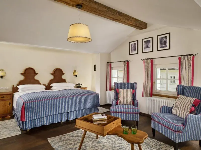 호텔 골드너 히르슈는 잘츠부르크 구도심에 위치한 5성급 호텔로, 최고의 서비스와 세련된 인테리어를 자랑해요. 가족과 함께 편안하게 머물 수 있는 공간이 마련되어 있습니다.